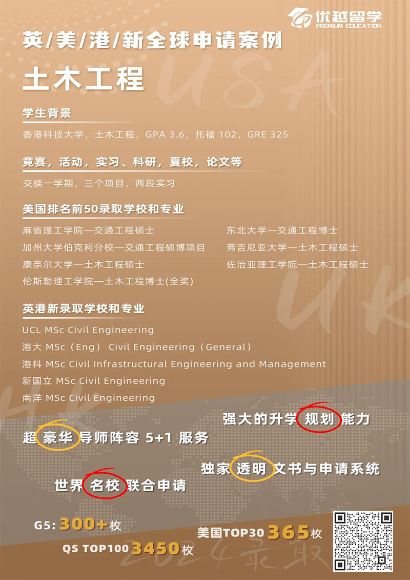 以上是【【碩博案例】土木工程碩博聯(lián)申大豐收!斬獲麻省理工碩士、東北大學(xué)博士等12枚offer】相關(guān)的全部內(nèi)容,查看更多【名校案例】相關(guān)資訊可前往【優(yōu)越留學(xué)】首頁!詳細申請規(guī)劃及方案定制請預(yù)約優(yōu)越留學(xué)顧問為你一對一解答!